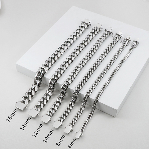 Pulsera de cadena de acero inoxidable cubano de 6/8/10/12/14/16mm opciones al por mayor disponibles para la fabricación y reventa de joyas