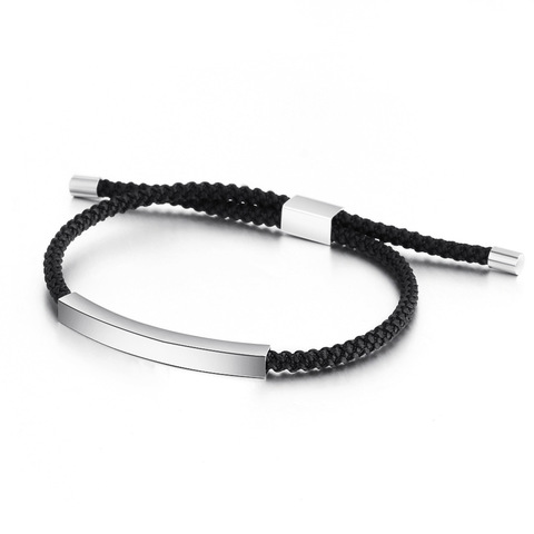 Pulsera de Amistad de cuerda trenzada con logo/palabras/frase grabado personalizado, barra de acero inoxidable, esmalte alto, para hombres y mujeres